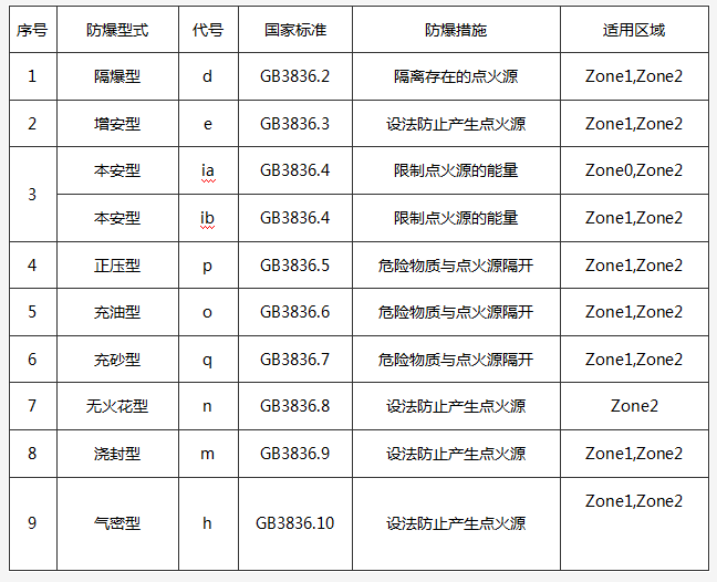 二、防爆方法對(duì)危險(xiǎn)場所的適用性: