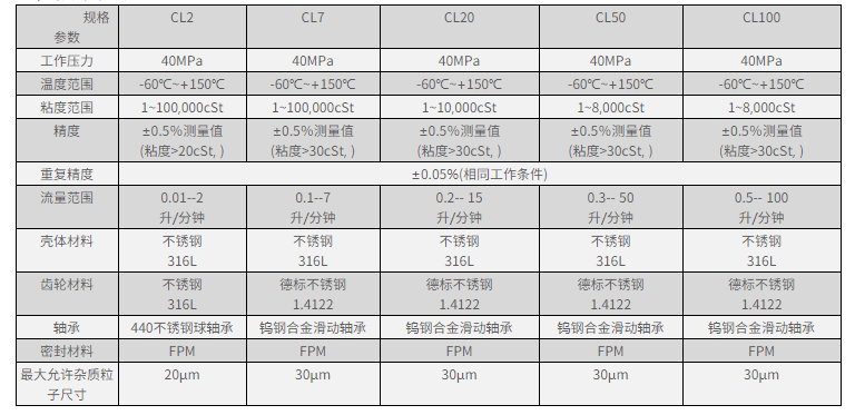 ? ? ?? 針對各種應用,借助不同的間隙、不同的軸承類型及不同材料,CL 系列齒輪式流量計可實現不同介質的測量。