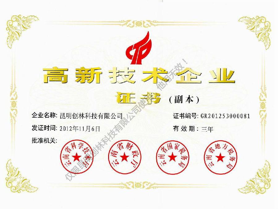 軟件企業認定證書