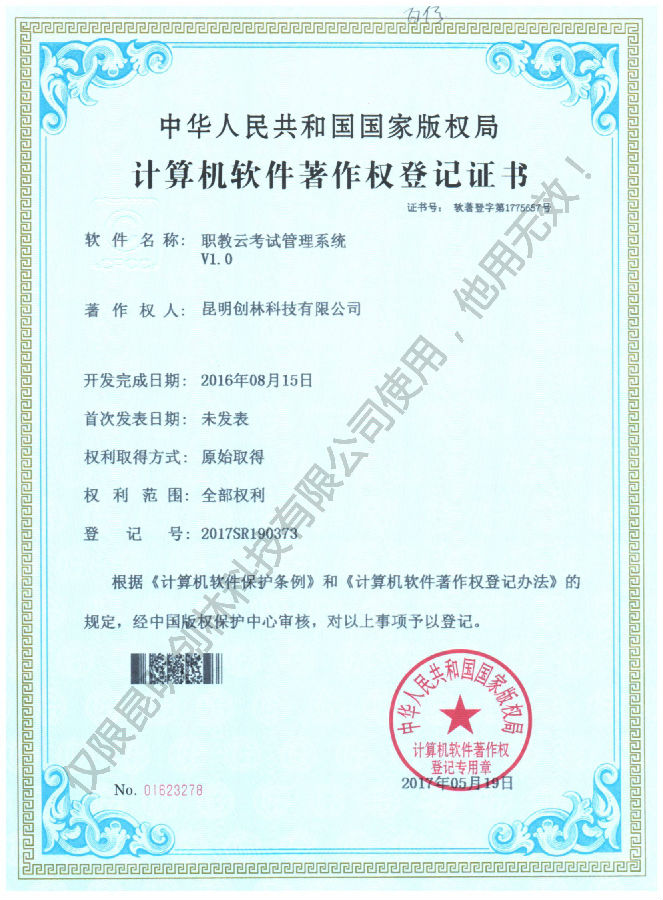 職教云在線考試管理系統軟件著作權登記證