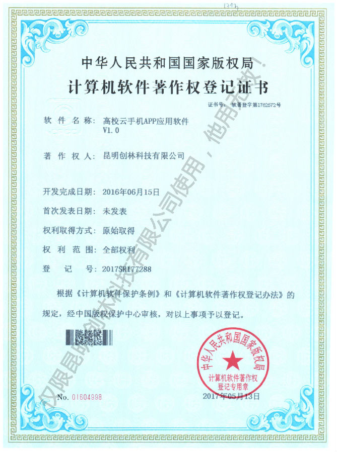 高校云手機APP應用軟件著作權登記證