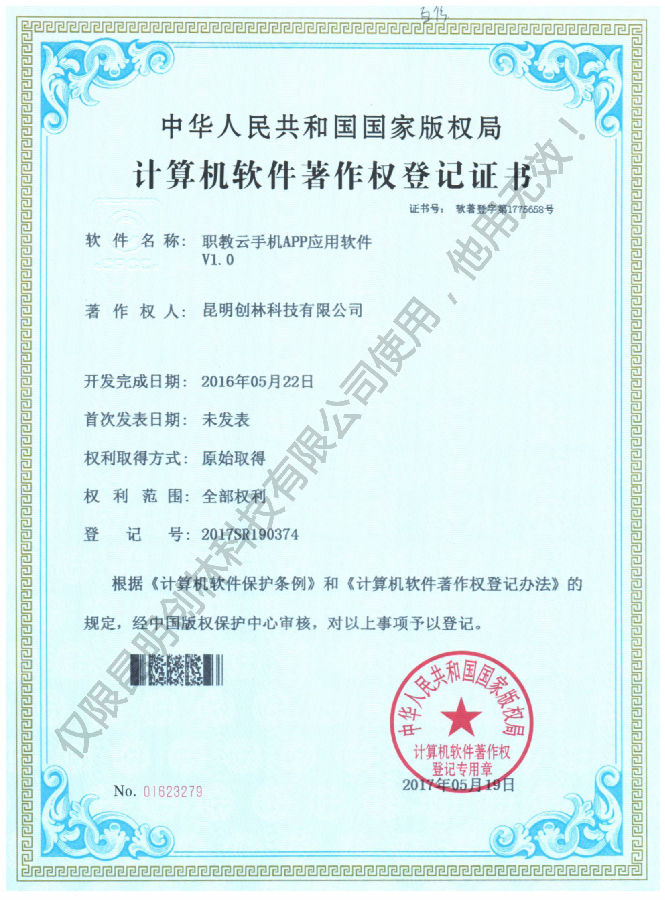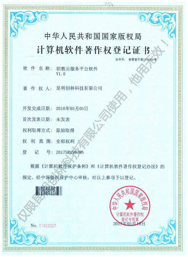 職教云服務平臺軟件著作權登記證